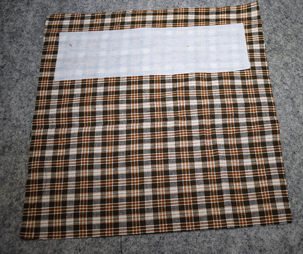Take the 6″ x 12″ piece of lining and place it on the wrong side of the lining piece about 1″ down in the center. Stitch all the way around to secure.