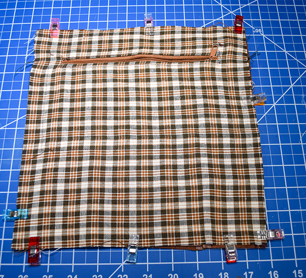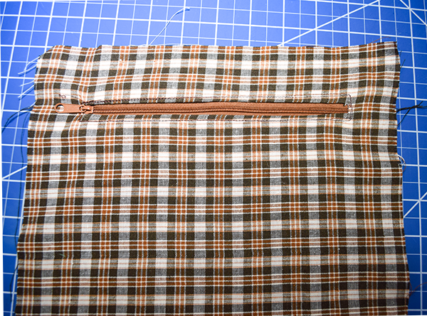 Place the zipper on the wrong side of the lining so that the teeth appear in the opening you just created. Our to the right side and stitch all the way around the zipper to secure.