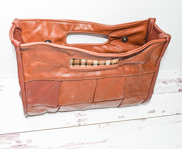 I had a Bunch of scrap pieces of leather that I really wanted to get out of my stash. I had no idea what to do with them because they were only pieces. Then I found this video on Youtube that was perfect for these leather pieces. I put together my own version of this basket weave clutch. If you would like to watch the video you can see it here. If you would like more bag making patterns and tutorials head over to our handbag page.