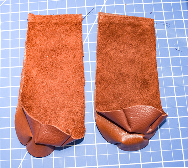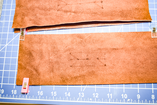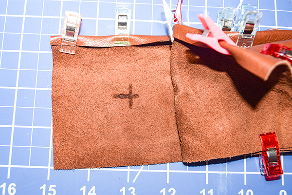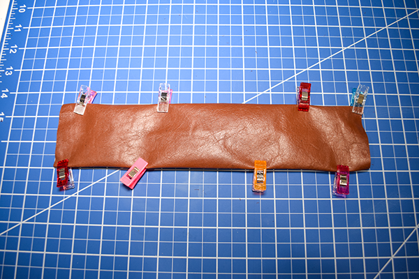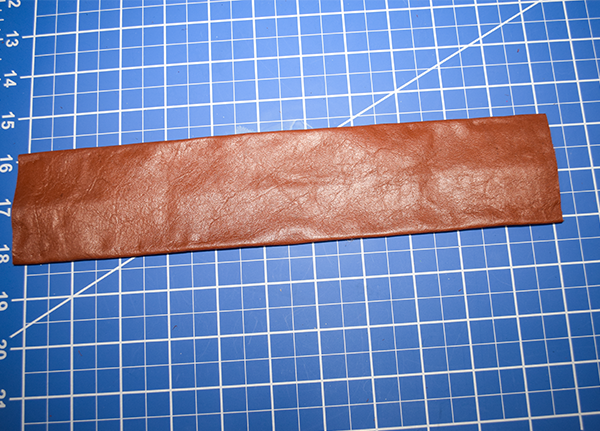 Fold over the long raw edges of each strip by 1/4″. Secure the folded over part using leather glue. The glue is like super glue so you will need to work quickly but carefully to avoid wrinkles.