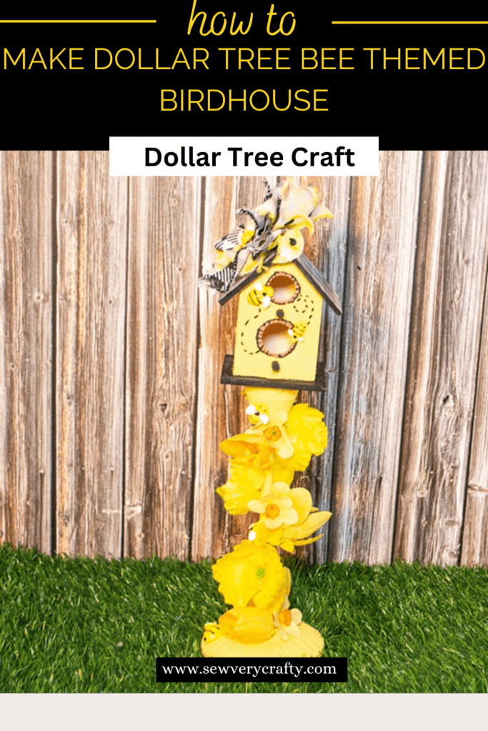 I love these Dollar Tree bird houses. They are so fun and you can create any theme you want to decorate them. I have bees on my mind this year and decided to create a Dollar Tree Bee Themed Bird House. I love how this project came out and know you will too. So head over to Dollar Tree and pick up a few things to make your own bee bird house. I you would like more Dollar Tree projects head over to my Dollar Tree page for many more.