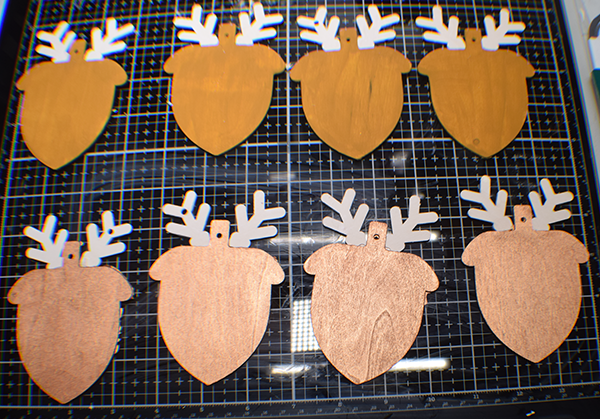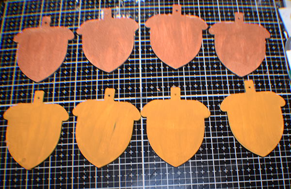 Paint four of the acorns in the metallic bronze and four using the yellow ochre.