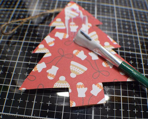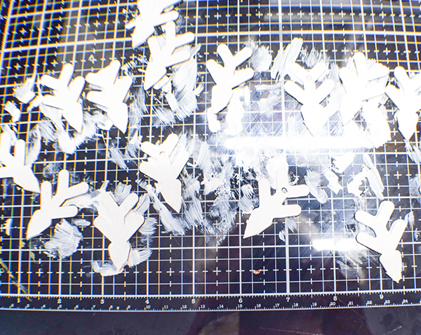 Take two of the snowflake points and glue them to the backside of the acorn so they stick up and become the antlers of the reindeer.
