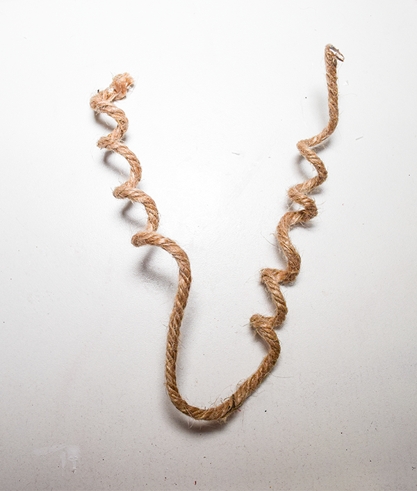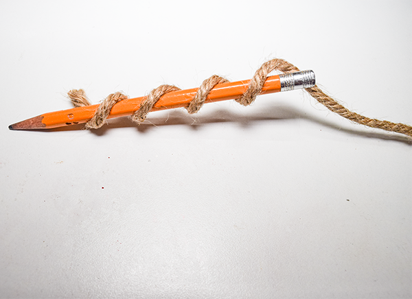 Wrap the wired jute around a pencil to make spirals. Fold the jute in half to create each side of the antlers. Hot glue the antlers of the top of the cutting board.