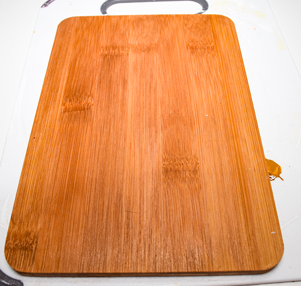 Using the craft stain cover all sides of the cutting board. You can use a baby wipe to spread it for a nice even coat. Wipe off any excess.