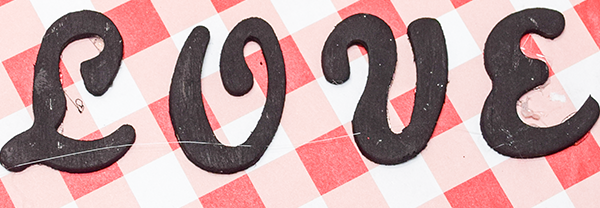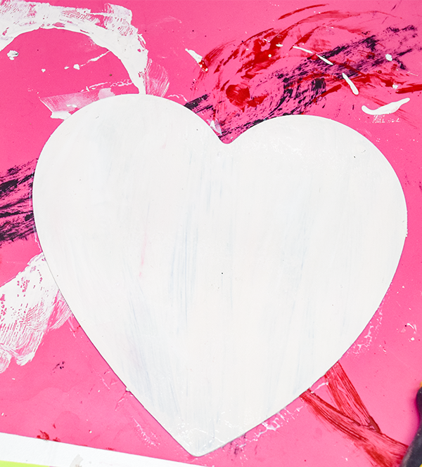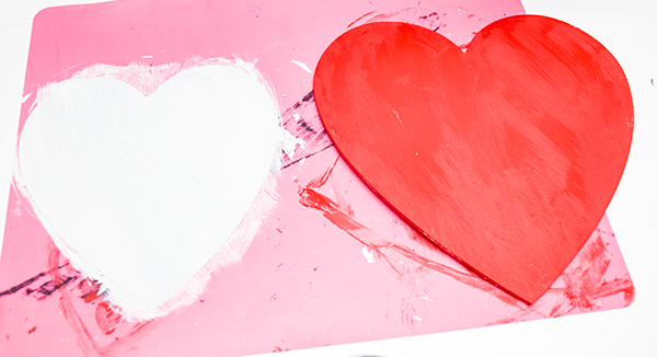 Paint the metal heart white and the wood heart red using chalk or acrylic paint. I also painted the gold heart picks in a variety of pink and red.