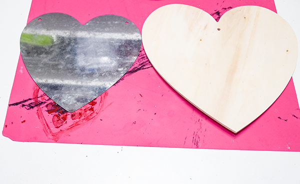 Use the spackle to fill the holes in the wood heart and the metal heart. Let dry completely. Sand to make it level with the wood and metal.