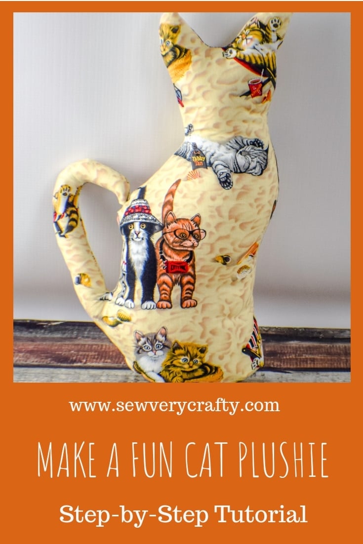 I found these beach going kittens at JOANN Fabric & Craft Storesbut you can head to Hobby Lobby or Fabric.com to get the perfect fabric for your cat plushie. I left my plushie without a face because of the cool fabric but you could embroider a cute cat face on your plushie. This post contains affiliate links that if you click on them and make a purchase I may receive a small commission at no extra cost to you. Â