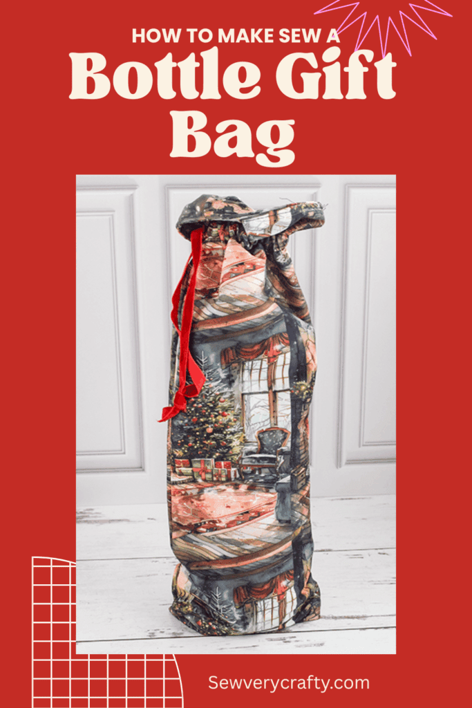 Here is another simple gift giving project that any beginner can sew. With Christmas just around the corner this gift bag holder is a great accompaniment to any bottled drink or condiment. I like the fact that this is a reversible gift bag to give you more options. If you would like more holiday projects check out our holiday project vault for many more.