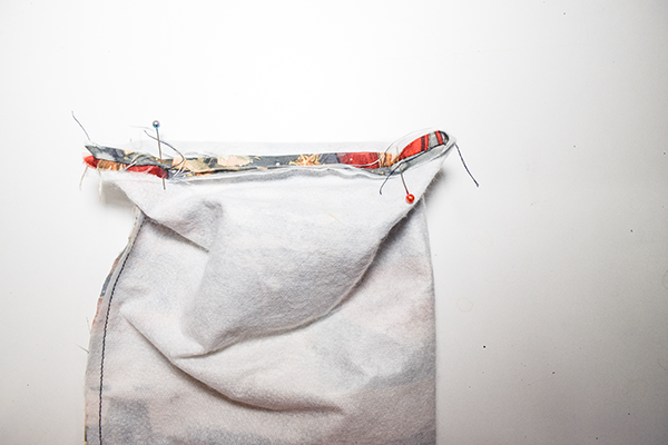 I fused SF 101 to both the outer and inner bag because my fabric was not cotton. I needed to add a bit of structure to the fabric so I used the SF 101 for this purpose. Because I was not using cotton, I used a press cloth that was cotton to fuse the interfacing using a hot iron.