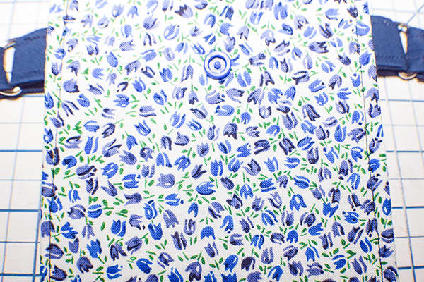 Measure down about 1″m from the bottom of the tab piece and place half of the Kamsnap in the center. Fold the tab over as if closing the bag and locate the spot for the other half of the snap. Insert the other half.