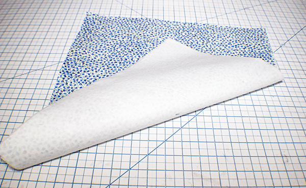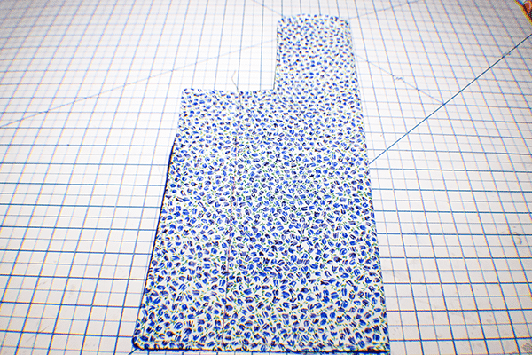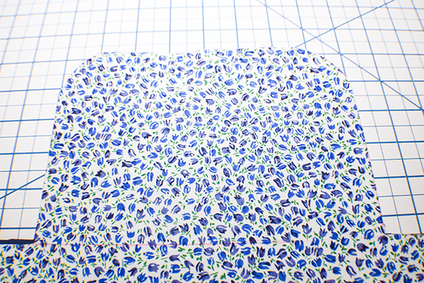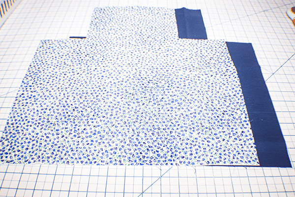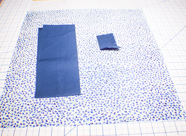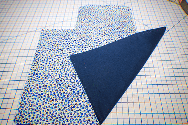 From one end of the outer and lining fabrics cut out the corners from each side that measure 4″ H x 5 1/2″W.