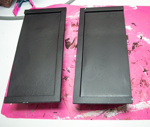 I painted the shelves black for a little contrast. You may need several coats for good coverage. You could also spray paint them.