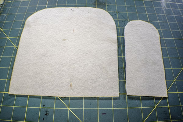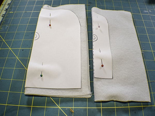Using the pattern pieces cut one each of the fleece on the fold of the main fleece piece and the bottom fleece piece. Â
