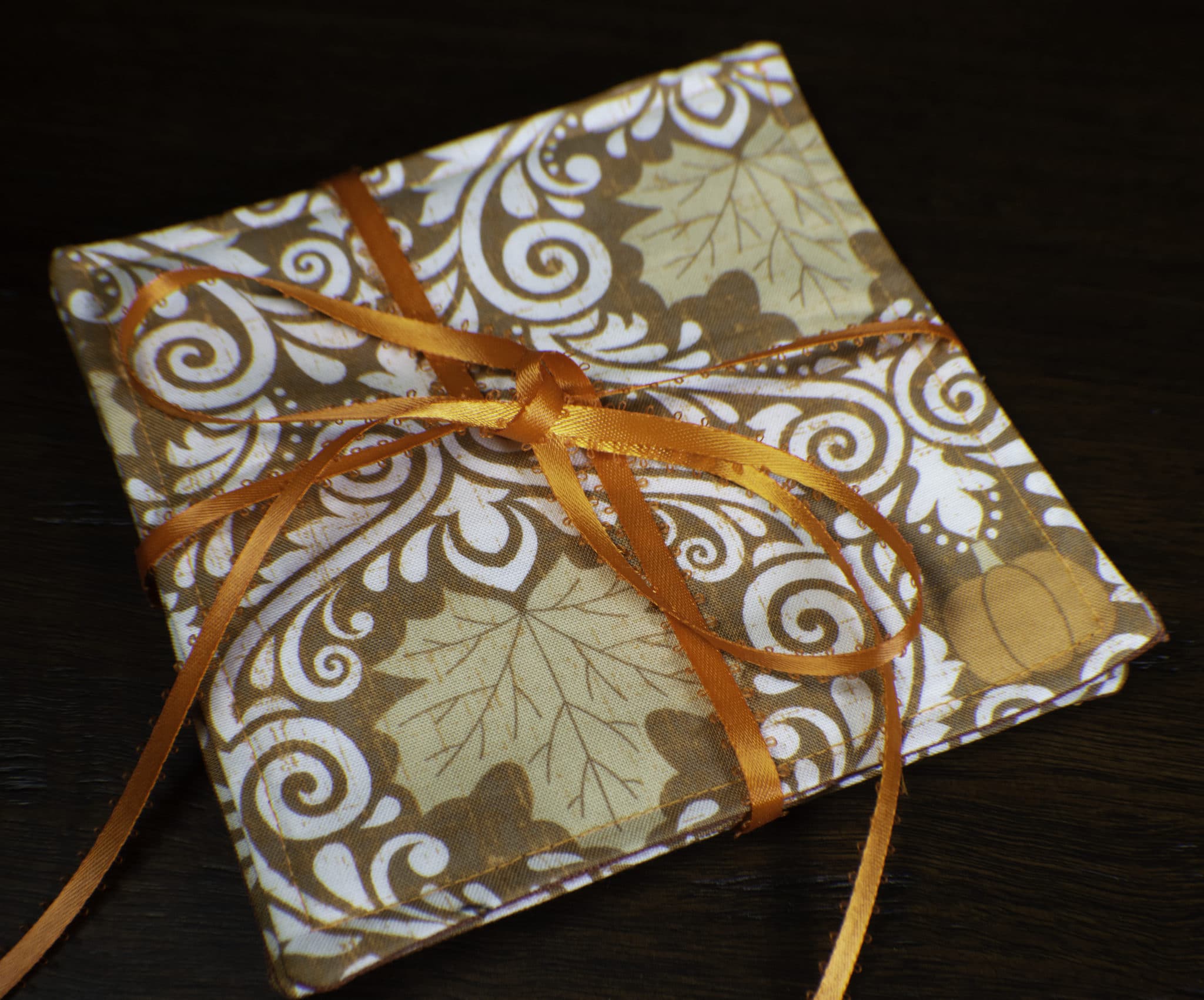 Once again I was looking for projects that I could make using my fabric remnant stash and decided that these DIY reversible fabric coasters were the perfect solution. These coasters are so easy to make that anyone with beginner sewing skills can make them in about 30 minutes. The beauty of this project is that you can choose fabrics that match your decor or go with a holiday theme. Today I am making autumn themed coasters for the upcoming Thanksgiving season. They are so easy to make you can make them for seasons and holidays year round. It is completely up to you.