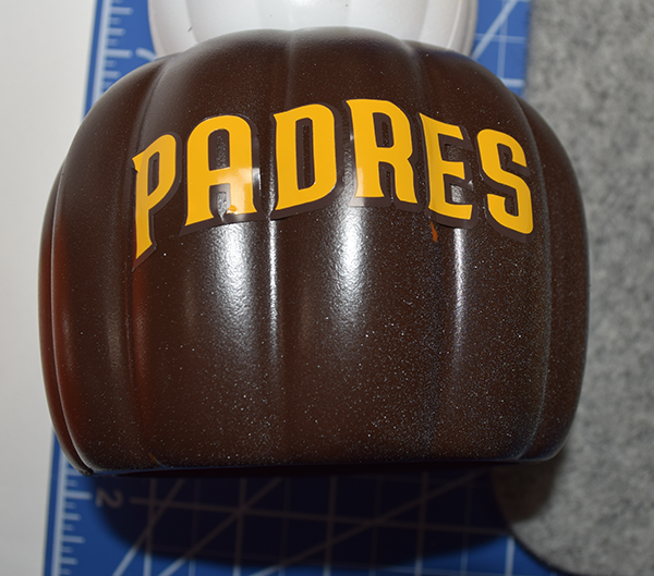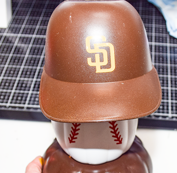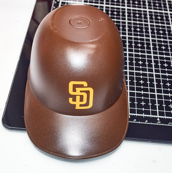 The Padres have a very distinctive logo of a monk swinging a bat. Using my Cricut and an SVG I purchased online I created the Monk using permanent vinyl.