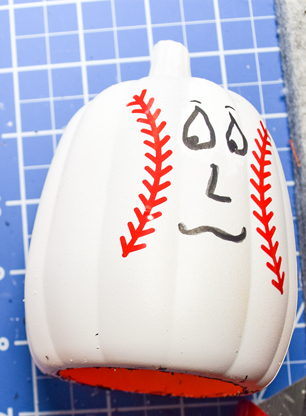 I started with the top and added some baseball stitching to really drive home the theme of this project. I used my Cricut and permanent vinyl but you can choose any way you like to create yours.