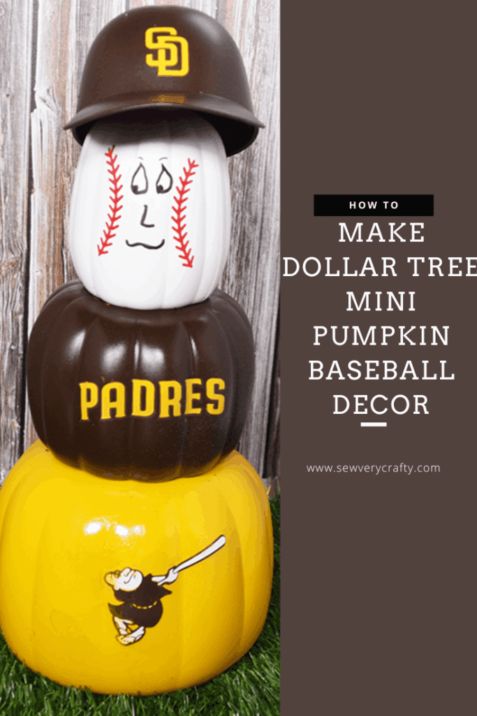 It is getting to playoff time in Major League Baseball. My team didn't make it but my sister in law's team did so I wanted to make something to celebrate her team's entry to the playoffs. I saw some Dollar Tree mini stacked pumpkins and thought these were perfect for what I had in mind. I decided to make Dollar Tree mini pumpkin baseball decor. The stickers were made using my Cricut but you can purchase these online for just about every team. If you would like more Cricut crafts head over to my other website www.paperdaisy.com and if you would like more Dollar Tree projects check out my Dollar Tree page right here.