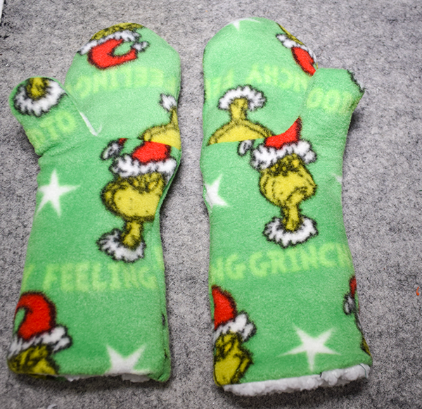 While it is warm here in California it is cold in the rest of the country so I thought I would create these fur lined fleece mittens for those of you who live where it is cold. This is a super simple beginner sewing project that anyone with basic sewing skills can make in no time. The pattern, of course, is free. I found this pattern at Onlinefabricstore.net. There are only three pieces for the outer mitten and three pieces for the inner mitten. Of course you need to make two. If you would like more holiday sewing and crafting projects head over to our holiday project vault for many more.