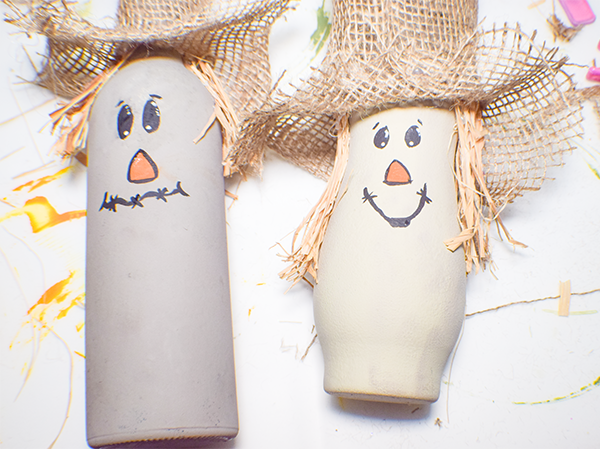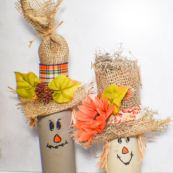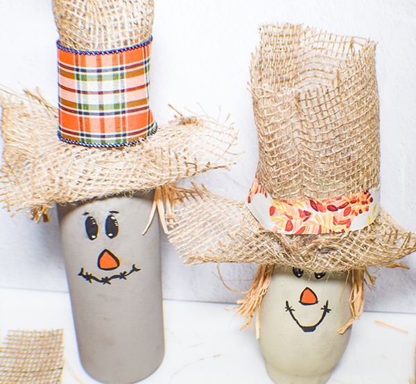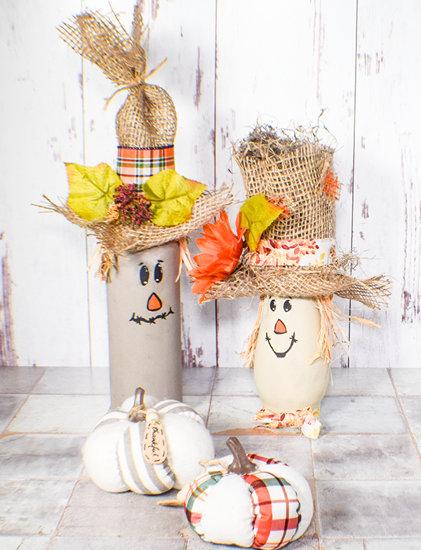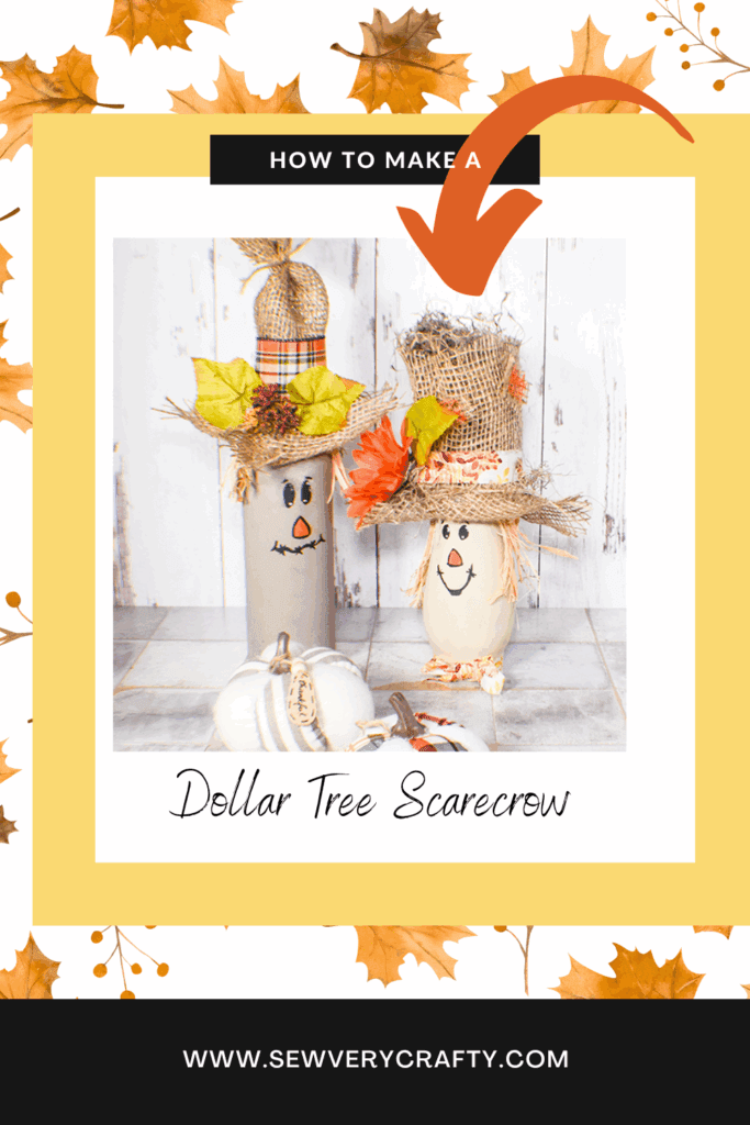 Before 99 cent store went out of business I purchased some glass bottles and jars. I purchased one blank wine bottle. I really did not know what I was going to make with until I was inspired to create these fun scarecrows from the wine bottle and a Dollar Tree Vase. These scarecrows are a simple craft project that you can make from wine bottles. I really enjoyed this project. I hope you do too. If you want more holiday sewing and crafting projects head over to my Holiday project vault for more.