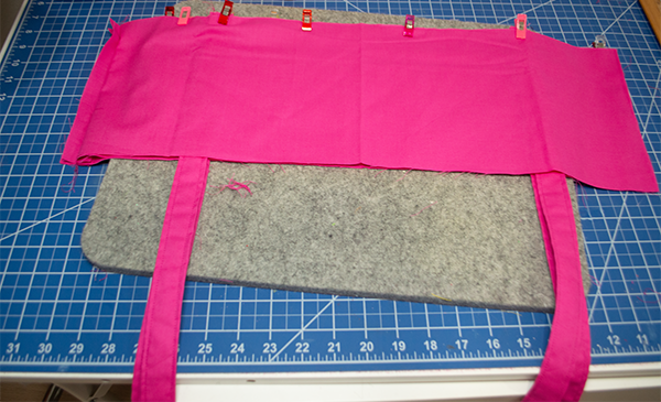 Using the pattern, cut four pieces on the fold of the top fabric. Or, you can cut two of the top fabric and two for the lining if you choose to use a different fabric for the lining. Cut four straps that measure 4″ x 22″. Step 4: Stitch the Top Pieces Together