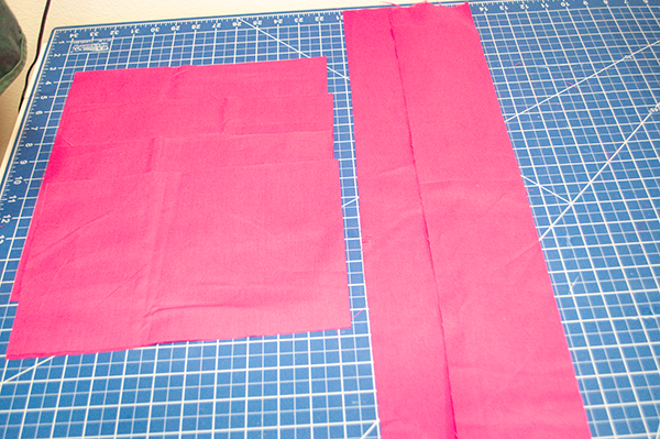 Place two of the top pieces right sides together and stitch one short end using a 1/2″ seam allowance. Repeat for the second two pieces.