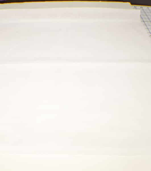 To create the strips cut 1 1/2″ x 20″strips of fabric using a rotary cutter and cutting mat.  Do this for both the main fabric and the contrasting fabric.  Cut 21 of each type of fabric.  This will create a square that measures 16″ x 16″. You will need to cut two additional pieces of fabric.  The best way to do this is to cut one piece the length of the pillow form + 6″ x the width of the pillow form. For my pillow I cut a single piece that measured 22″ x 16″. Cut the second piece in half. That left me with two pieces that measured 11″ x 16″. Your measurement will be different depending on the size of your pillow form. Cut a 20″ x 20″ piece of interfacing.
